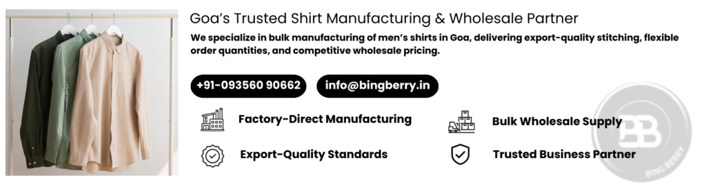 Discover reliable shirt manufacturing and wholesale services in Goa, offering premium men’s shirts, bulk production, private labeling, and consistent quality for retailers and brands.